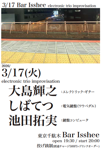 2026/5/24(日) Ftarri 有馬純寿+渡辺愛+しばてつ 電気合奏 TBA